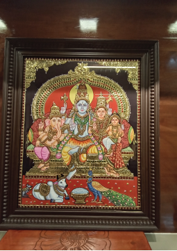 Clients can choose from a wide range of deity themes or request personalized portraits. Each artwork is mounted in a carved teak frame, ready to adorn your pooja room, living hall, or office as a symbol of culture and prosperity.